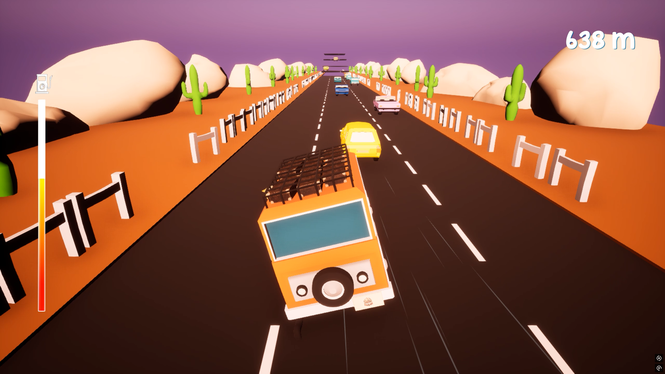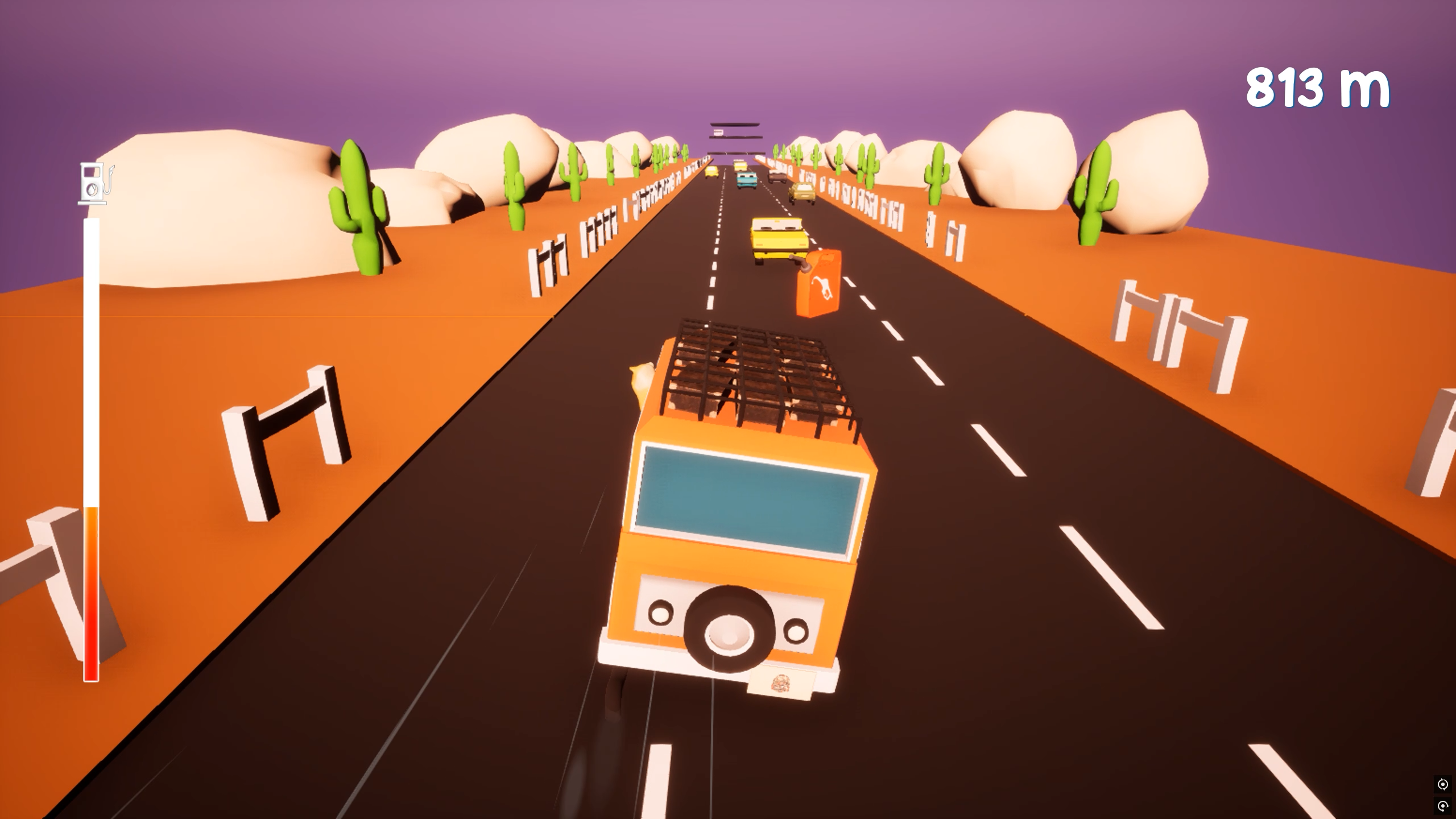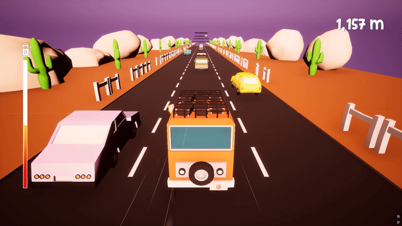 - You drive a summer van down an endless road, dodging traffic and collecting fuel cans to keep your engine running.